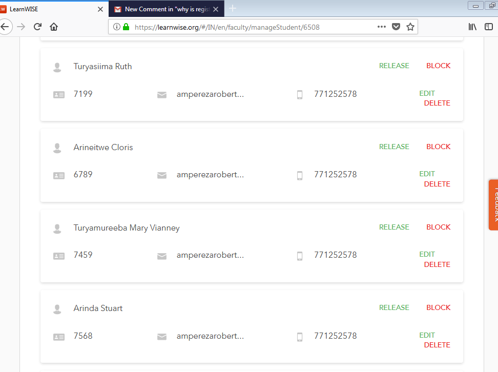 We see in the screenshot that all students have the same contact number. Could you please specify where you are seeing the issue?Â